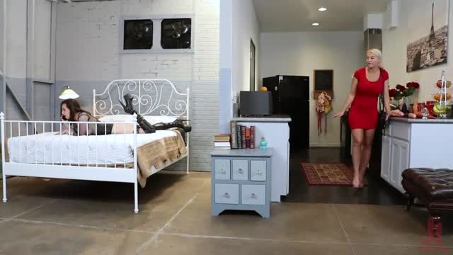 Sexy Nikki Darling squirts her brains out on a fucking machine and brutally facefucked by 2 cock