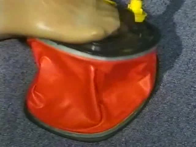 Footjob in rubber outfit