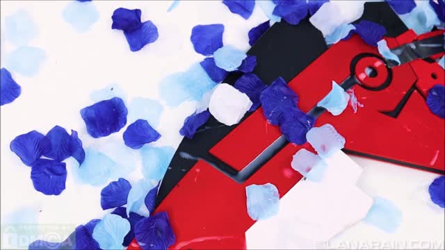 Blonde on red strap-on fuck